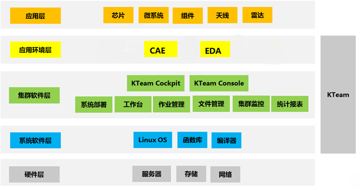 KTeam是基爾科技自主研發(fā)的高性能協(xié)同設(shè)計(jì)仿真軟件平臺,可實(shí)現(xiàn)設(shè)計(jì)與計(jì)算集群資源統(tǒng)一部署、使用、瀏覽、管理、監(jiān)控和統(tǒng)計(jì)等,可大幅提高仿真效率,簡化平臺管理。KTeam由應(yīng)用工作臺、作業(yè)調(diào)度模塊、文件管理模塊、集群監(jiān)控模塊、資源統(tǒng)計(jì)模塊組成。選用KTeam及其相關(guān)服務(wù),可以幫助用戶部署操作系統(tǒng),安裝和測試集群軟件以及應(yīng)用環(huán)境,基于高性能集群硬件設(shè)備,提供傳統(tǒng)的設(shè)計(jì)環(huán)境和高速的仿真體驗(yàn)。